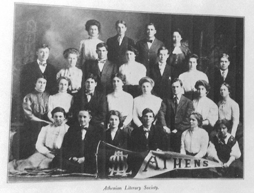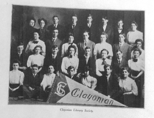 Both the Athenians and the Clayonians had their own campus halls “which are tastily decorated and nicely furnished, including pianos” on the third floor of the newly built Doolittle Hall (1901.) The debate competition was intense, and it was thought the trophy might go back and forth between the two for many years, but it didn’t happen that way. The Clayonians won it the first three years of the competition and according to the rules, it became theirs and they joyfully took it to their Society room. The Clayoninans were proud of this accomplishment and certainly made the Athenians, along with the rest of the campus, aware of this victory. They had their names engraved on the trophy. The sting of jealousy was prevalent amongst the defeated Athenians.