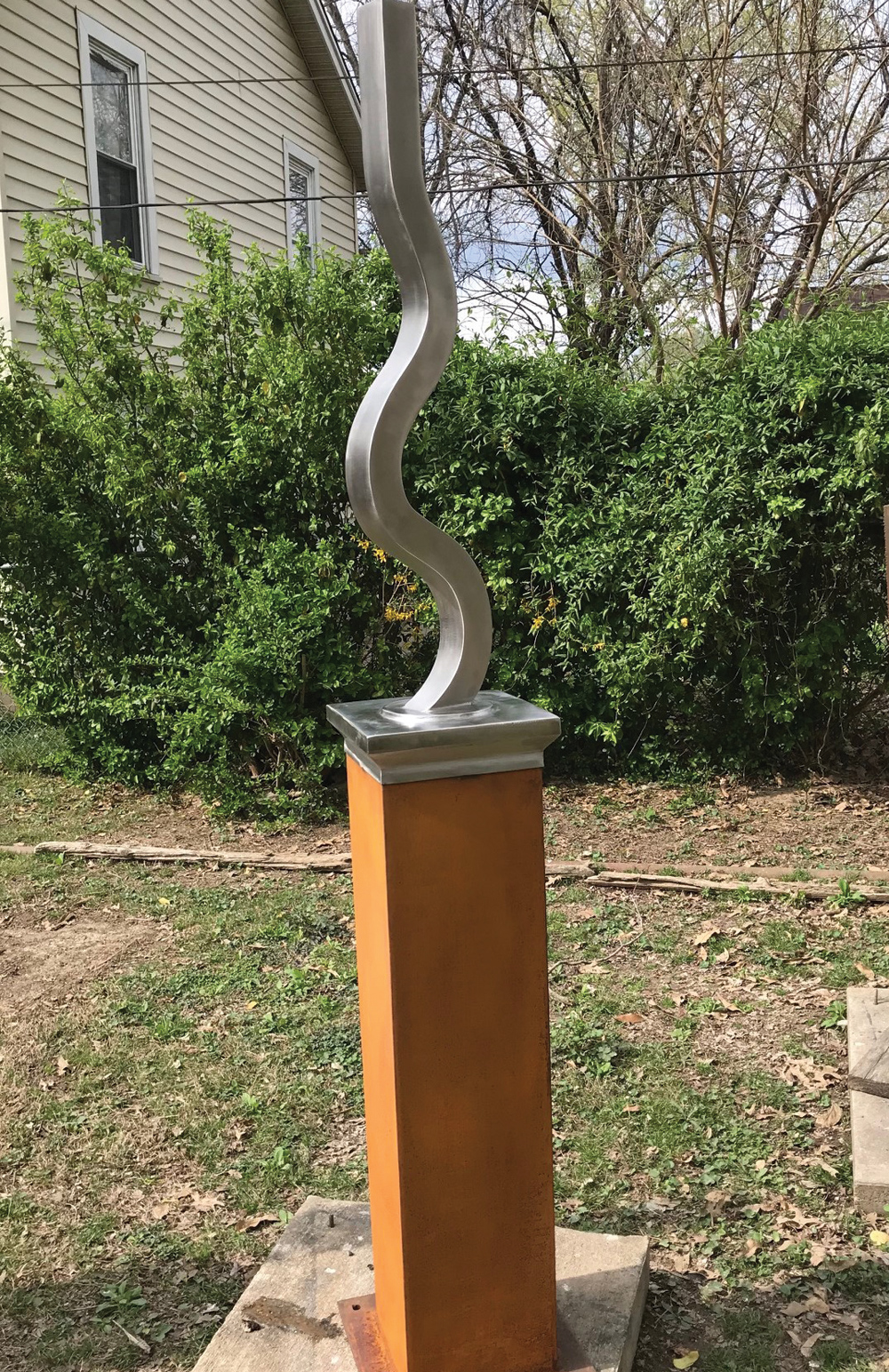 David Zahn – Confluence: A confluence is a place where one river flows into another. The sculpture shows how our lives are much like the river. Growth, adaptability, and transition are what this sculpture conveys. The sculpture is a lost wax cast bronze sculpture with a corten steel base.