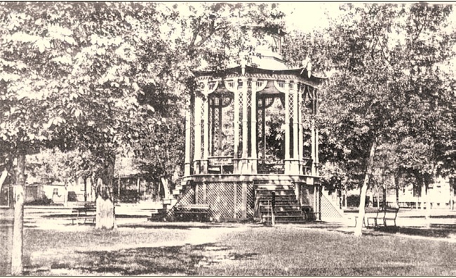 The Dubuque Herald announced in 1873 that “the city fathers intend to make this plot [Jackson Park] of ground one of the beauty spots of the city.” A few years later in 1877, the city hired architects Heer and Naescher to build a gazebo in the new park. The $150 project was funded by ten citizens and dedicated by Congressman David B. Henderson in September. The design of the gazebo was questionable with steep stairs and no hand railings. Republican candidate James G. Blaine refused to use the space as a setting for a late 1878 speech, preferring to speak from an A.A. Cooper wagon. The gazebo was torn down and sold for scrap just twenty years later as it had been so neglected that it had become a dangerous eyesore. Jackson Square was a public park in name only. It was fenced and was unavailable for general public use in its early years. Boys used the vacant lot north of the square for a ball ground and sometimes ran into the square after a batted ball. The pagoda was only available for band use. Sitting in it was forbidden. The police were called to arrest any person trespassing on the square. The July 17, 1879, Herald called upon the city “to open Jackson Park to the public.”