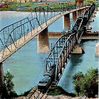 Federal law gives river traffic priority over the railroad. Modern safeguards have been put in place to prevent accidents, but that wasn’t always the case. In 1886, the engineer of a west-bound freight train failed to notice the span was open until he reached the final approach. He whistled for an emergency stop and threw the engine into reverse. When the engine was a mere 20 feet from the end of the track, the brakeman and fireman jumped while the engineer frantically tried to stop the train. The cowcatcher and front wheels dropped into the void, dragging the engine and two cars into the Mississippi. The engineer survived with cuts and bruises.