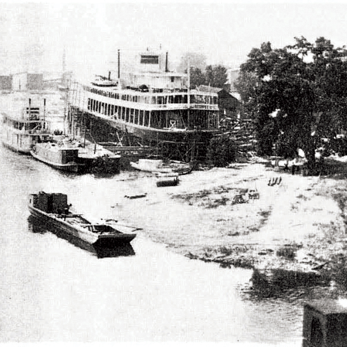 In 1878, Joseph “Diamond Jo” Reynolds relocated his Diamond Jo Line of river steamers to Eagle Point, where he also founded a boatyard. The Diamond Jo Boatyard specialized in building and repairing wooden-hulled steamers – not just for the Diamond Jo Line, but also for boats belonging to other Mississippi River riverboat operators. At its peak, the company employed some 100 workers and created a huge demand for lumber, hardware, and iron work.