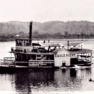 The exact date of the first ferry located at Eagle Point is unknown, but a ferry was in operation by April 1852. At that time, the cost for a loaded wagon with a pair of horses and a driver from the east side of the river to Eagle Point was 50¢, with each additional pair of horses or oxen adding 25¢ to the bill. In 1870, the J.A. Rhomberg was built to serve as a ferryboat, providing a convenient method of travel between Eagle Point and Wisconsin.
