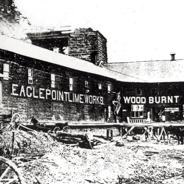 George Fengler founded the Eagle Point Lime Works in 1872, and in 1875 sold half his interest in the company to Henry Kriete. Located below the limestone bluff at Eagle Point, the production of wood-burnt lime from heated limestone totaled some 350 barrels daily during peak operation. The company ran without competition through 1910.