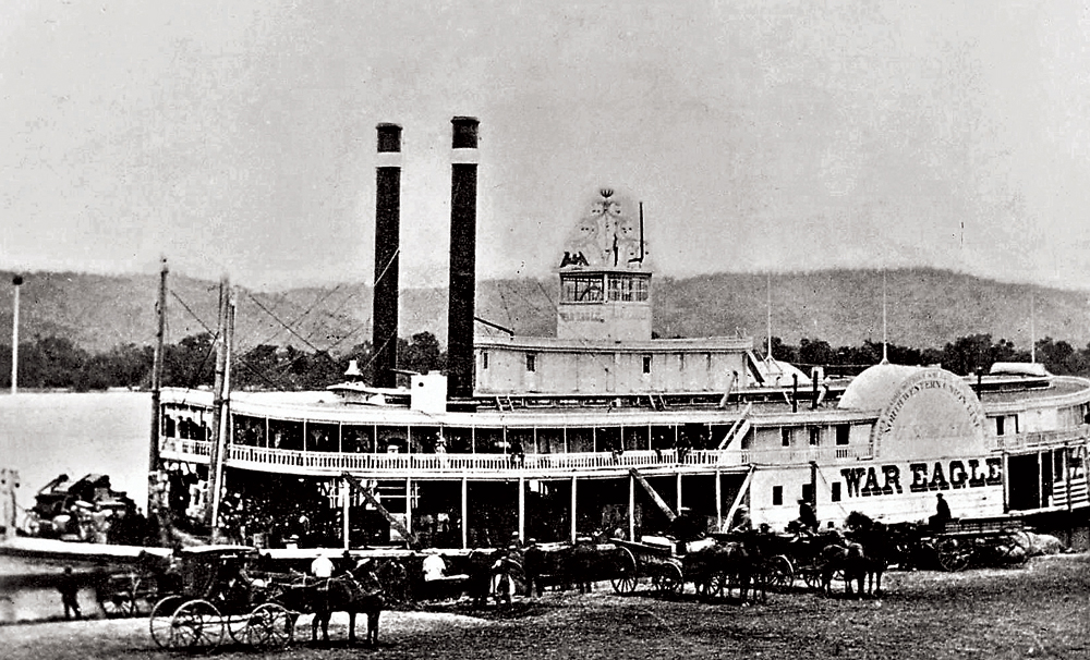 During the Civil War, William oversaw nearly $2 million in government-funded transportation on the Mississippi River. In 1866, William’s company consolidated with the La Crosse & Minnesota Packet Company. William served as superintendent of the new Northwestern Union Packet Co., managing river operations until 1872.
